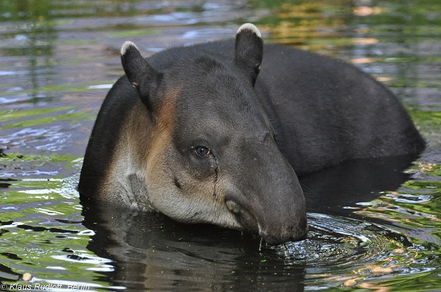 Tapirs are characterised by a protuberance on the upper lip, similar to a small trunk. This prensile organ is used to catch leaves and fruits, and to breathe when they are underwater.