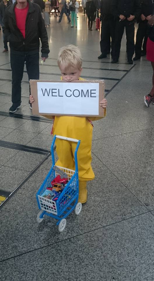 1. This little boy offered his toys to refugees approaching Munich’s central station 2. Sandra Tsiligeridu and some friends rescued a Syrian refugee off the coast of the Greek Island of Kos. He had been adrift for 13 hours, clung to a life vest 3. In Munich, this policeman played with a little boy, letting him