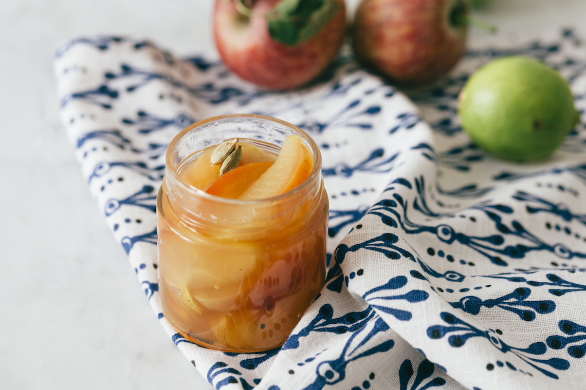 Apples with cardamom and lemon syrup can be kept in the fridge for as long as a week if they’re well preserved.