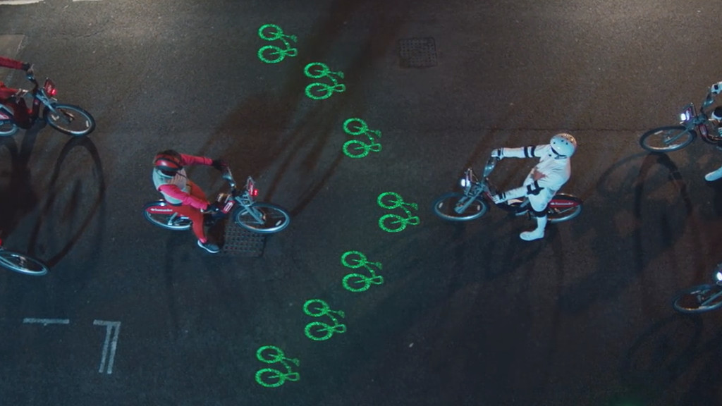 London’s hire bikes have become more high-tech and even brighter. Santander Cycles, which manages London’s bike sharing programme in collaboration with Transport for London, decided to use irony to present its new invention: a light installed on the front of vehicles projecting the image of a bike onto the road.