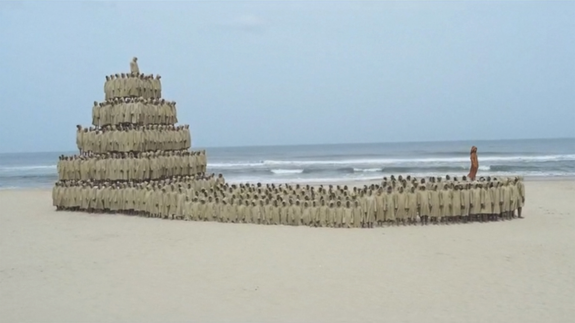 There’s a particularly touching scene where a human pyramid of refugees forms the shape of a ship run ashore. In another scene the bad girl is wearing a Paris Saint Germain soccer jersey with sponsor Fly Emirates logo replaced with Fly Pirates.