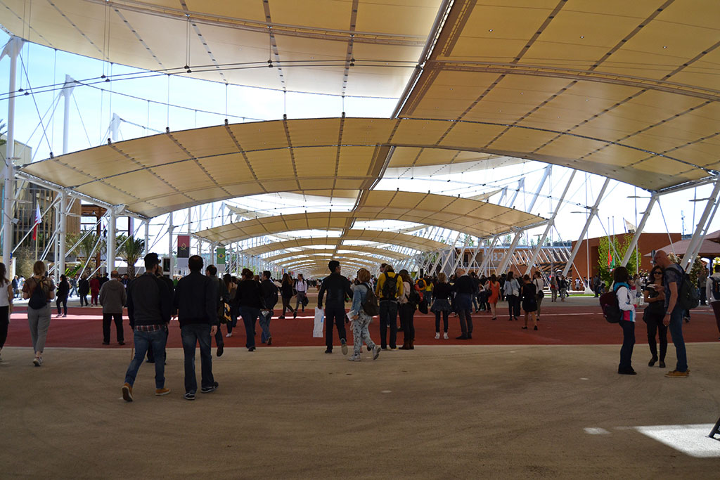 As in Ancient Roman city planning, the project of the fair site – carried out by a team of worldwide renowned architects, including Stefan Boeri, Ricky Burdett and Jacques Herzog – consists of a main wide street (cardo) that is house to the Italian pavilions, intersected by a second main street (decumanus) where the other countries’ pavilions lie.