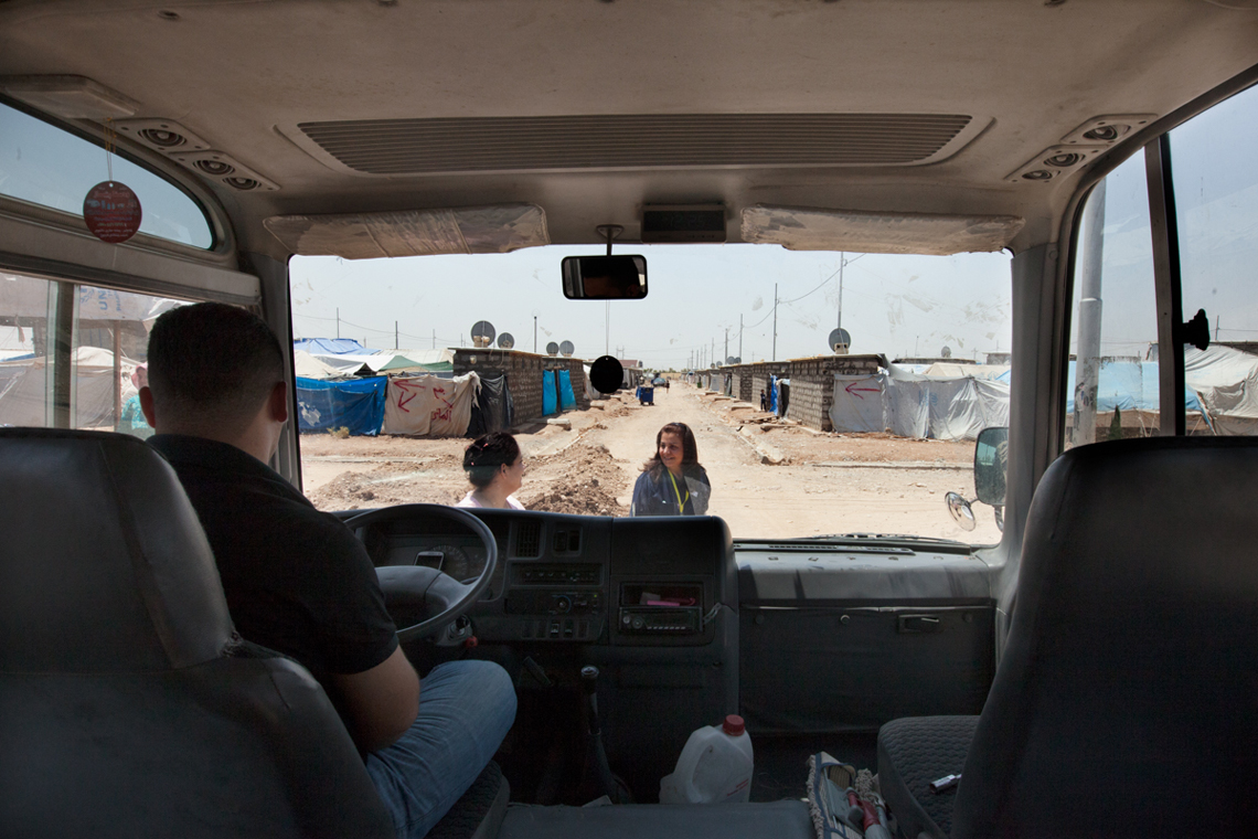 A young nurse standing next to the doctor measures blood pressure of women on the minivan. Her name is Raghda, she’s 24, and is Christian. She’s shier and more discreet than doctor Aya. She’s got blue eyes and a sad and elusive gaze. She comes from Mosul, the city where she was born and grew up. In 2014, the year when the Islamic State was created, she was obliged to leave her birthplace.