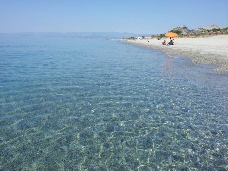 Spiaggia di Roccella Jonica, Reggio Calabria. This beach has crystal waters with a small town overlooking them. This beach has received the highest number of blue flags for its cleanliness environmental protection. Walking along this beach means travelling through time.