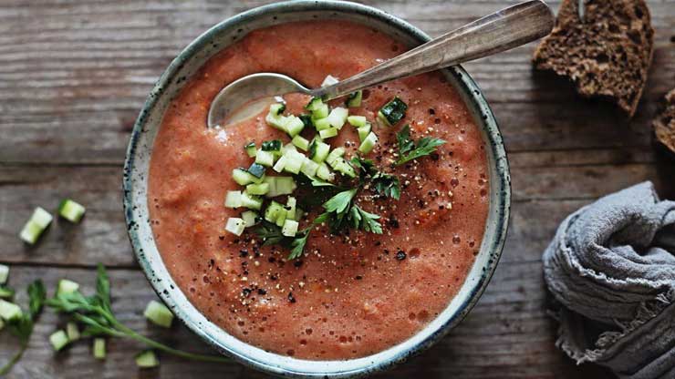 July is the month of tomatoes, which are at the peak of their flavour and freshness. Use them to make gazpacho, a fresh, flavourful, and delicious Andalusian soup made with raw tomatoes and other vegetables. With hot temperatures, there is nothing better than a fresh tzatziki, the delicious Greek starter made of yogurt and cucumber that is perfect to reintegrate the mineral salts you lose by sweating.