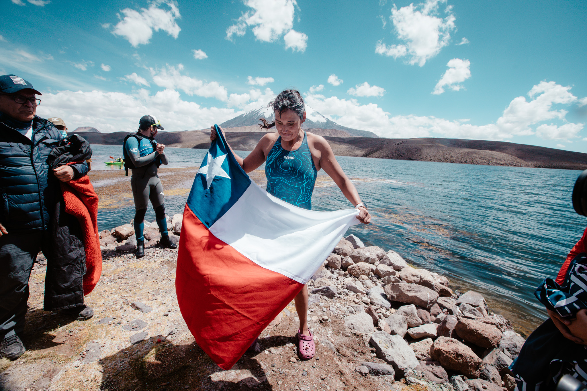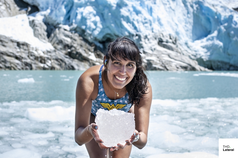 It’s Sunday February 5th. On the Antarctic Peninsula, a day like any other is about to be a day to remember. Barbara Hernandez is standing, poised, on the edge of a dinghy. She looks up and through the fog catches a glimpse of the towering contours of the Chile Bay glaciers. Abruptly she dives in: the water is freezing cold and the 37-year-old Chilean is wearing only a swimming costume, swimming cap and some goggles. When the thermometer reads 2 degrees, every stroke is a mammoth undertaking, even if the international press and everyone back home (Chile) call you the Ice Mermaid: “I didn’t really feel cold at first, the hypothermia only kicked in towards the end. But I savoured every single moment of this swim. I feel at home in the water and this was my dream.”