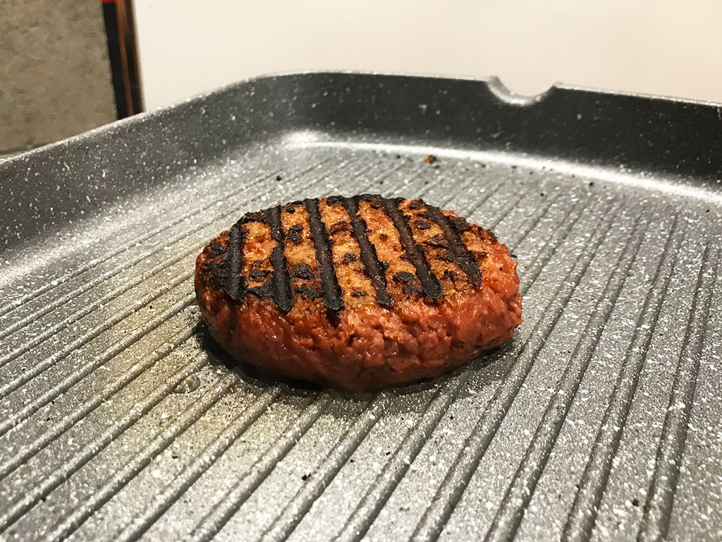 We’re in the process of quantifying that but here’s the basics: instead of feeding a cow, raising it for eight or nine months with all the water, food and grains involved, you’re basically growing peas and that’s much simpler and a shorter time to go from plants to protein. A cow converts plants to protein but it’s not efficient. And when you go directly to the plants without any of the waste, antibiotics, hormones or any of the other things that are given to livestock, it can be a much lighter footprint. Not to mention the health benefits: there’s no cholesterol, half the saturated fats.