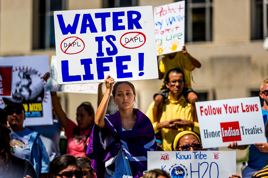MIgliaia di nativi americani protestano contro un oleodotto nel Dakota del Nord che minaccia le terre sioux e il fiume Missouri.