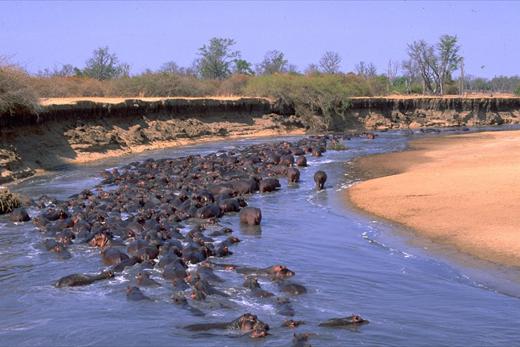 A 2013 paper by researcher and veterinary expert Chomba Chansa explains that hippo populations in the Luangwa River oscillate upwards and downwards in four cycles of about eight years each, due to the collective influence of natural environmental factors. These factors have help the hippo population remain within the carrying capacity and for the entire period from 1976 to 2008. “Since the environmental factors were not constant, but rather fluctuated from year to year, the hippo population also followed the same pattern,” the report states.